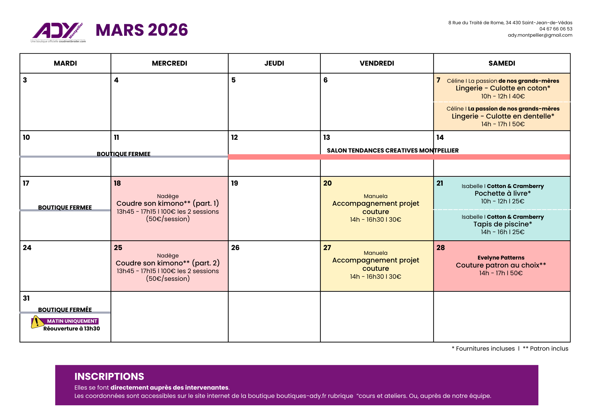 Voir le planning d’ateliers complet chez Ady Montpellier
