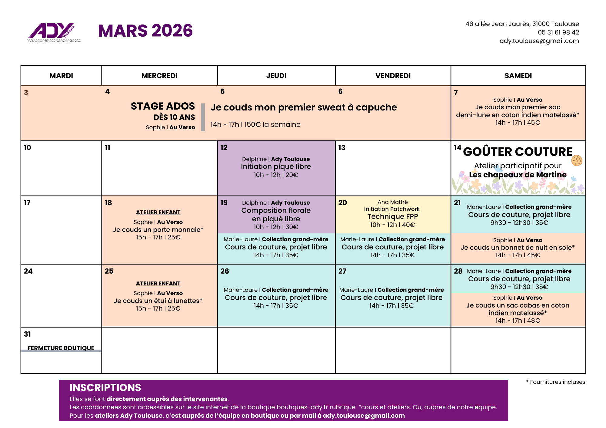 Voir le planning d’ateliers complet d’Ady Toulouse